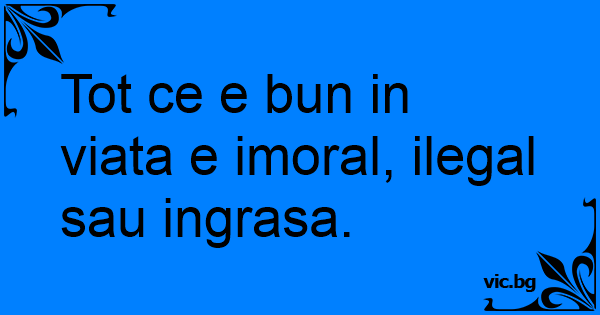 Tot ce e bun in viata e imoral, ilegal sau ingrasa.