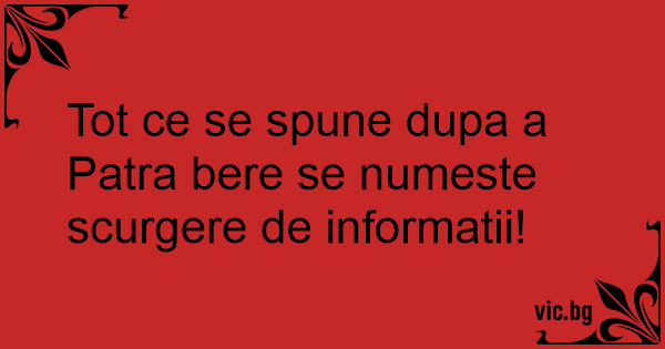 Tot ce se spune dupa a Patra bere se numeste scurgere de informatii!