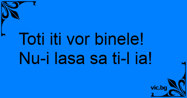 Toti iti vor binele! Nu-i...