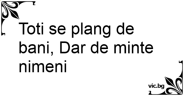 Toti se plang de bani, Dar de minte nimeni