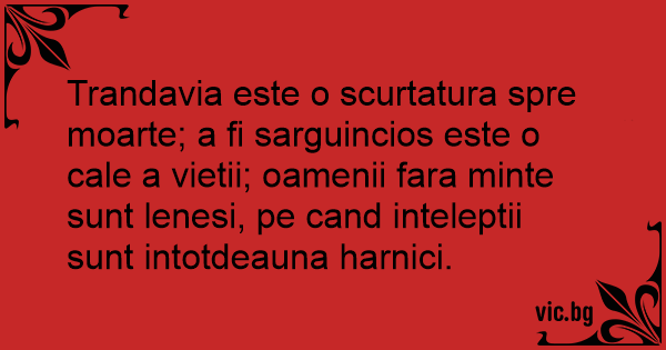 Trandavia este o scurtatura spre moarte; a fi sarguincios este o cale a vietii; oamenii fara minte sunt lenesi, pe cand inteleptii sunt intotdeauna harnici.
