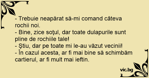 - Bine, zice soţul, dar toate dulapurile sunt pline de rochiile tale!