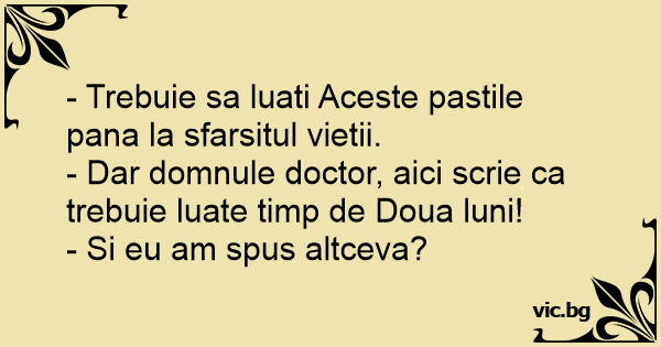 - Dar domnule doctor, aici scrie ca trebuie luate timp de Doua luni!