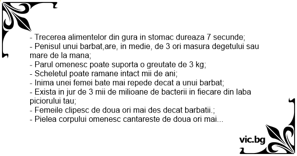 - Trecerea alimentelor din gura in stomac dureaza 7 secunde;