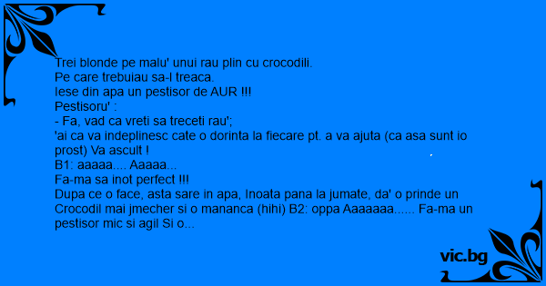 Trei blonde pe malu' unui rau plin cu crocodili.