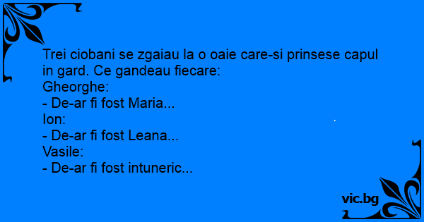 Trei ciobani se zgaiau la o oaie care-si prinsese capul in gard. Ce gandeau fiecare: