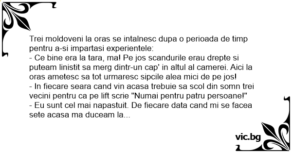 Trei moldoveni la oras se intalnesc dupa o perioada de timp pentru a-si impartasi experientele: