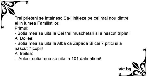 - Sotia mea se uita la Cei trei muschetari si a nascut tripleti!