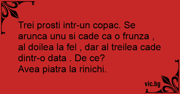 Trei prosti intr-un copac. Se arunca unu si cade ca o frunza , al doilea la fel , dar al treilea cade dintr-o data . De ce?