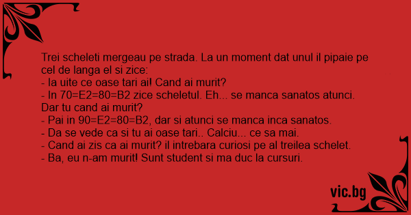 - In 70=E2=80=B2 zice scheletul. Eh... se manca sanatos atunci. Dar tu cand ai murit?