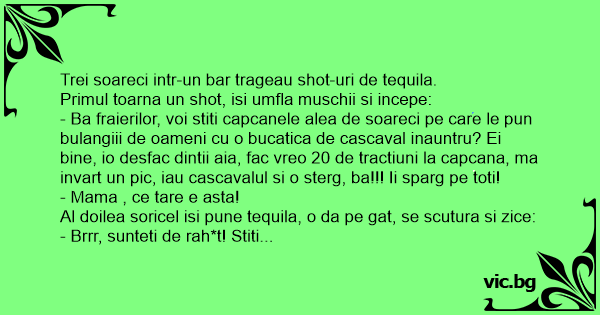 Al doilea soricel isi pune tequila, o da pe gat, se scutura si zice:
