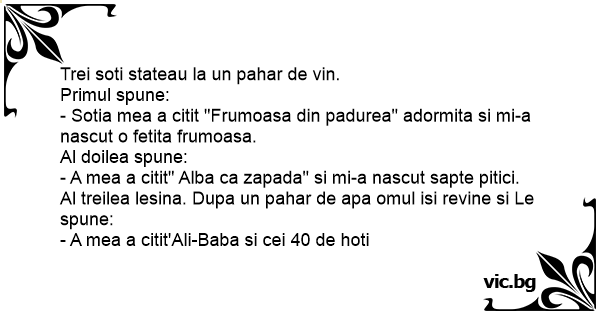 Trei soti stateau la un pahar de vin.