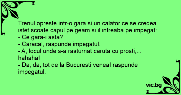 - Da, da, tot de la Bucuresti venea! raspunde impegatul.