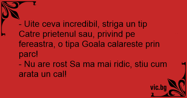 - Uite ceva incredibil, striga un tip Catre prietenul sau, privind pe fereastra, o tipa Goala calareste prin parc!