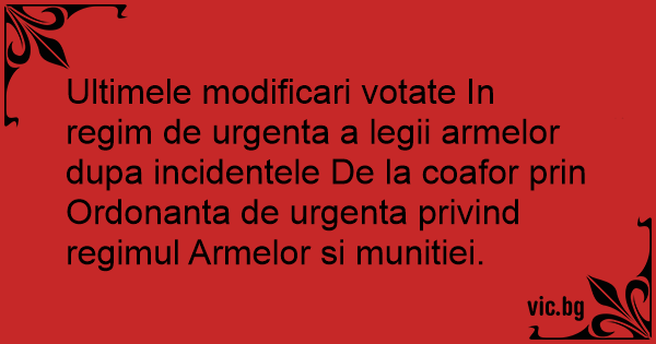 Ultimele modificari votate In regim de urgenta a legii armelor dupa incidentele De la coafor prin Ordonanta de urgenta privind regimul Armelor si munitiei.