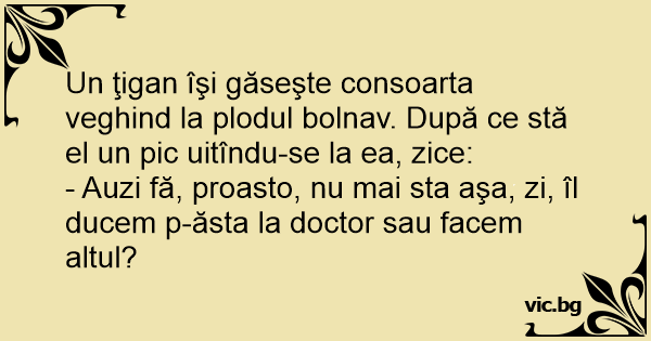 - Auzi fă, proasto, nu mai sta aşa, zi, îl ducem p-ăsta la doctor sau facem altul?