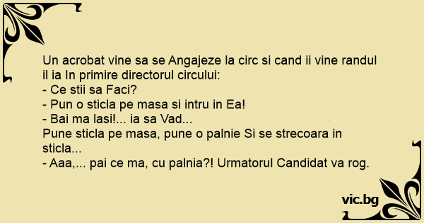 Un acrobat vine sa se Angajeze la circ si cand ii vine randul il ia In primire directorul circului: