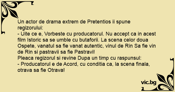 Un actor de drama extrem de Pretentios ii spune regizorului: