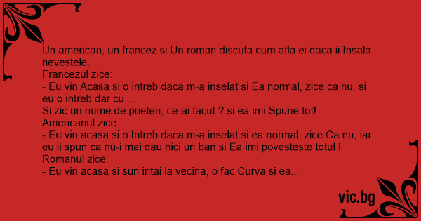 Un american, un francez si Un roman discuta сuм afla ei daca ii Insala nevestele.