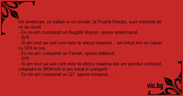 Un american, un italian si un roman, la Poarta Raiului, sunt intrebati de ce au murit: