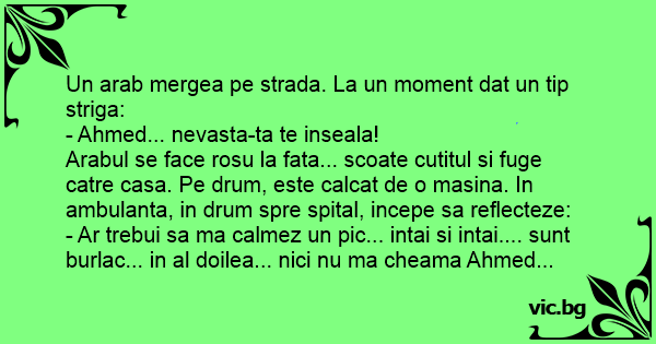 Un arab mergea pe strada. La un moment dat un tip striga: