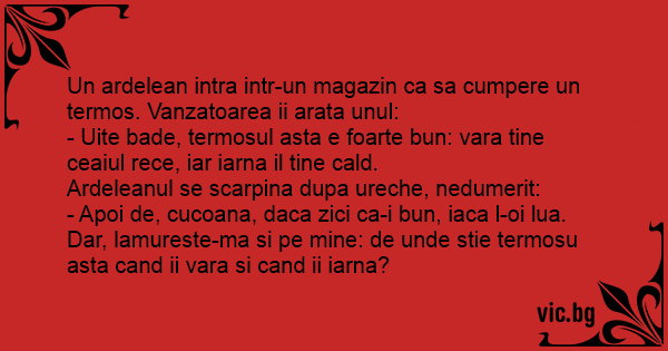 Un ardelean intra intr-un magazin ca sa cumpere un termos. Vanzatoarea ii arata unul: