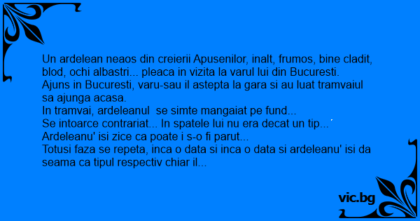 Totusi faza se repeta, inca o data si inca o data si ardeleanu' isi da seama ca tipul respectiv chiar il mangaia pe fund... Asa ca, in culmea uimirii, il intreaba conspirativ pe varu-sau: