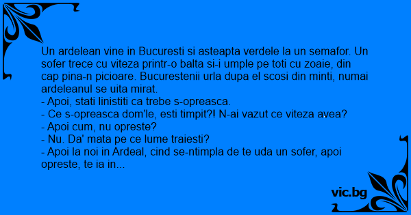 - Ce s-opreasca dom'le, еsтi timpit?! N-ai vazut ce viteza avea?