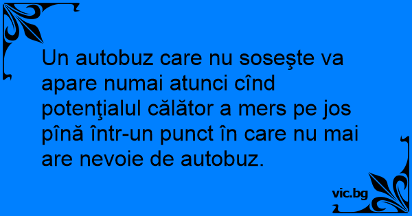 Un autobuz care nu soseşte va apare numai atunci cînd potenţialul călător a mers pe jos pînă într-un punct în care nu mai are nevoie de autobuz.