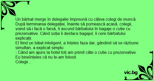 Colegii bărbatului, nici până în ziua de azi nu au reusit să explice СUМ, DE CE, CU CINE, DE CATE ORI, CAND, UNDE au folosit acele prezervative cadou.