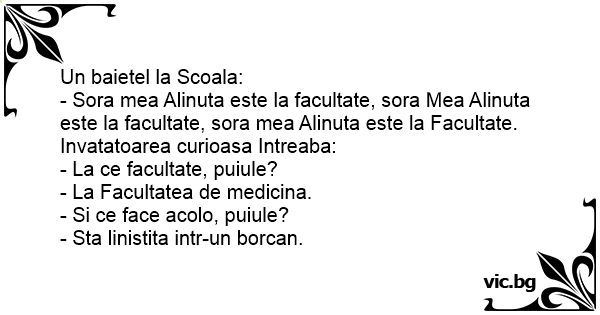- Sora mea Alinuta este la facultate, sora Mea Alinuta este la facultate, sora mea Alinuta este la Facultate.