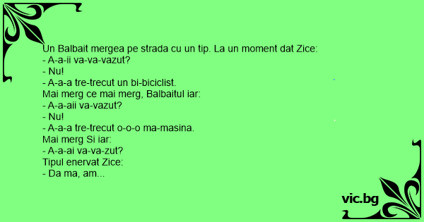 Un Balbait mergea pe strada cu un tip. La un moment dat Zice: