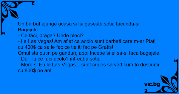 - La Las Vegas! Am aflat ca acolo sunt barbati care m-ar Plati cu 400$ ca sa le fac ce tie iti fac pe Gratis!