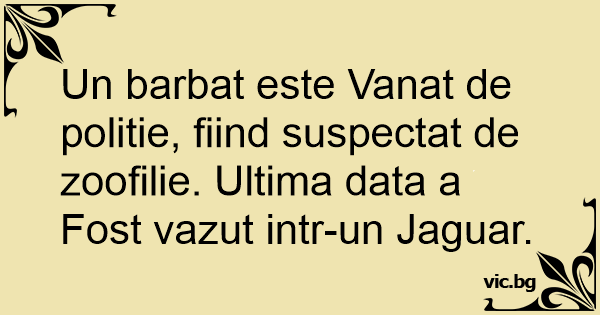 Un barbat este Vanat de politie, fiind suspectat de zoofilie. Ultima data a Fost vazut intr-un Jaguar.