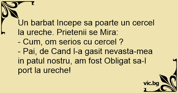 - Pai, de Cand l-a gasit nevasta-mea in patul nostru, am fost Obligat sa-l port la ureche!