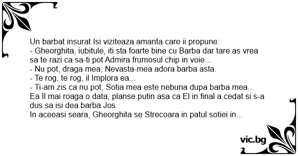Un barbat insurat Isi viziteaza amanta care ii propune: