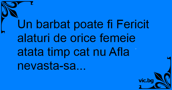 Un barbat poate fi Fericit alaturi de orice femeie atata timp cat nu Afla nevasta-sa...