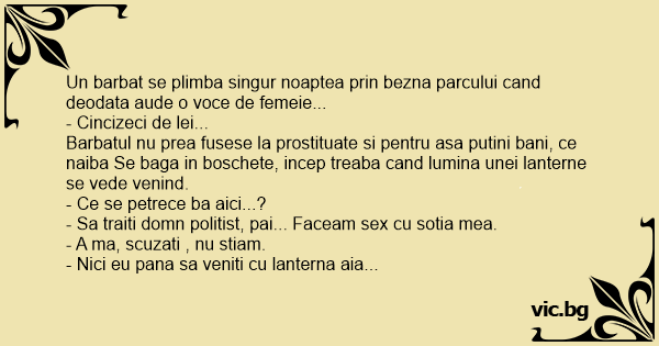 Un barbat se plimba singur noaptea prin bezna parcului cand deodata aude o voce de femeie...