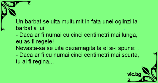 - Daca ar fi numai cu cinci centimetri mai lunga, eu as fi regele!