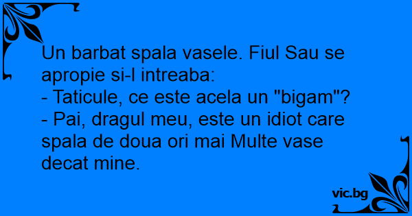 - Pai, dragul meu, este un idiот care spala de doua ori mai Multe vase decat mine.