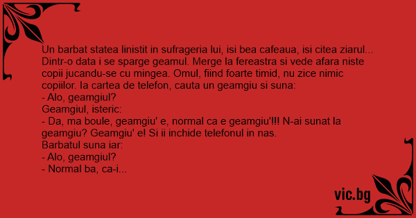 - Normal ba, ca-i geamgiu'! N-ai sunat adineauri si ti-am zis ca-i geamgiu'??? Geamgiu' e!