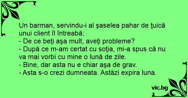 Un barman, servindu-i al şaselea pahar de ţuică unui client îl întreabă: