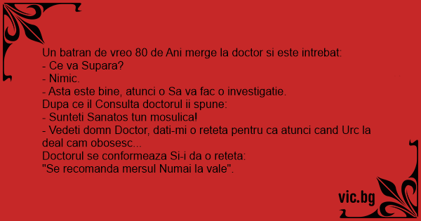 Un batran de vreo 80 de Ani merge la doctor si este intrebat: