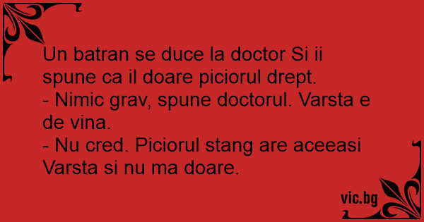 - Nu cred. Piciorul stang are aceeasi Varsta si nu ma doare.