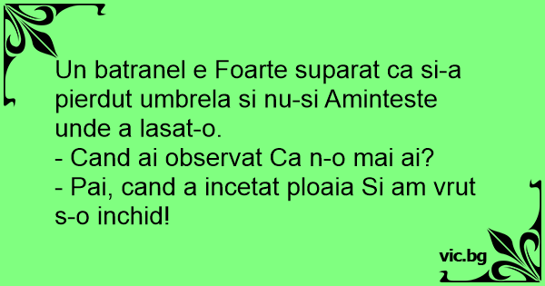 Un batranel e Foarte suparat ca si-a pierdut umbrela si nu-si Aminteste unde a lasat-o.