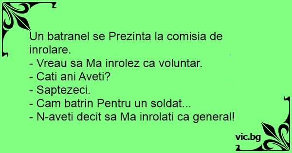 Un batranel se Prezinta la comisia de inrolare.