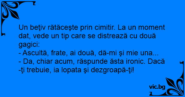 - Da, chiar acum, răspunde ăsta ironic. Dacă-ţi trebuie, ia lopata şi dezgroapă-ţi!