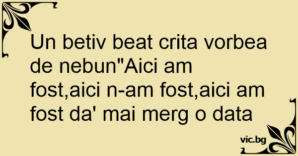 Un betiv beat crita vorbea de nebun"Aici am fost,aici n-am fost,aici am fost da' mai merg o data