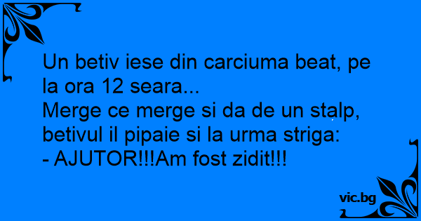 Merge ce merge si da de un stalp, betivul il pipaie si la urma striga: