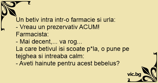 Un betiv intra intr-o farmacie si urla: